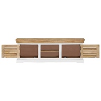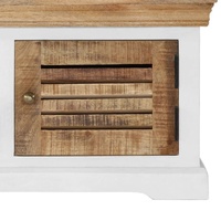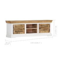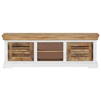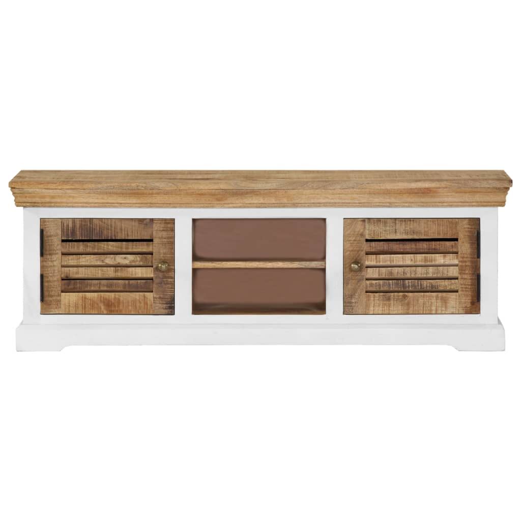 This wooden TV cabinet exudes a rustic charm. It will make a real attention-grabbing addition to your interior. The sideboard is made of solid mango wood, a hardwood with dense grains. Rough mango wood not only has the strength to bear the weight, but also stands the wear and tear of time. As a consequence, this beautifully-designed lowboard is exceedingly stable, durable and aesthetically-appealing. Additionally, this stereo cabinet is fully handmade and the exquisite wood grains enable every piece of furniture distinctive and slightly different from each other. This HiFi cabinet features 2 cabinets with doors and 2 compartments, providing commodious space for storing your multimedia appliances, books, shoes, as well as various other items. Important note: The wood grains vary from piece to piece, making each piece unique. The delivery is random, ensuring the exclusivity and individuality of your product.