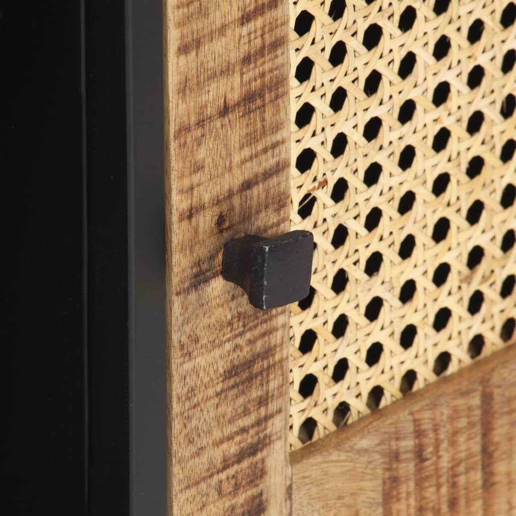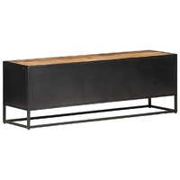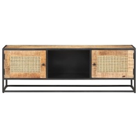 If you're looking for a simple touch of rustic charm to add to your interior decor, this solid mango wood TV cabinet is here! Solid mango wood is a tropical hardwood. It on the one hand has the strength to bear the weight, and on the other hand stands the wear and tear of time. Additionally, the exquisite craftsmanship and beautiful wood grains make every piece of HiFi cabinets slightly different from the next. The stereo cabinet is equipped with ample storage room, so you can display or keep any items you'd like well organised. The iron frame contributes to its sturdiness and stability. What's more, the TV unit features a hand-woven cane pattern on the door, adding to its rustic charming. Important note: The colours vary from piece to piece, making each wooden TV stand unique.
