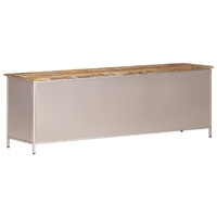 Introduce a touch of elegance and convenience to your interior decor with this trendy wooden TV cabinet! Made of rough mango wood and iron, this HiFi cabinet is durable and sturdy. You can place your TV, router, multimedia appliances, or display decorative items like photo frames, fruit baskets, or vases on the sturdy hardwood top. Equipped with 2 doors and 2 compartments, the TV unit offers ample storage space for various small items. Additionally, the doors are made of real bicycle chain wheels, which are stylish and unique. Important note: Colours and grains vary from piece to piece, making each piece unique. The delivery is random as well.