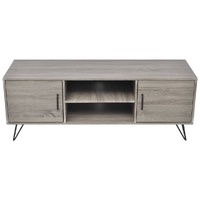 This modern TV cabinet will make a great focal point of your living room or entertainment area. It boasts plenty of storage space and the spacious design works well. The grey colour gives the cabinet a rustic look and feel that will suit any decor. Thanks to the high-quality MDF material and the strong steel pin legs, this TV stand is very sturdy and durable. The large compartments and shelves with ample space allow you to keep your DVD player, game console, streaming device and media carriers well-organised. What's more, two convenient cable outlets allow you to neatly keep all wires out of sight. With this functional media console, you can create a sleek, modern entertainment centre. Assembly is very easy.