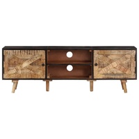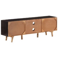 This unique wooden TV cabinet is meant to be an excellent choice for your bedroom and living room! The HiFi cabinet is made of rough mango wood and solid acacia wood, so it has the great strength to bear the weight and stands the wear and tear of time, making it stable and durable. Every step of the construction process is carried out with the greatest care, be it polishing, painting and lacquering. The craftsmanship and the beautiful wood grains make every piece of furniture unique and slightly different from the next. The sturdy top is ideal for placing your TV and stereo systems as well as decorative items like vases or potted plants. The TV stand also provides ample storage space for keeping your DVD players, game consoles, streaming devices, media carriers, etc., neatly organised. Important note: The colours and grains of the wood may vary from piece to piece, making each piece unique. The delivery is random, ensuring the exclusivity and individuality of your product.