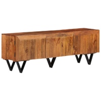 If you're looking for a simple touch of rustic charm to add to your interior decor, our solid mango wood TV cabinet is here! Solid mango wood is a tropical hardwood. It on the one hand has the strength to bear the weight, and on the other hand stands the wear and tear of time. Additionally, the exquisite craftsmanship and beautiful wood grains make every piece of hifi cabinet slightly different from the next. Each step of the process is carried out with the highest care, be it polishing, painting or lacquering. The stereo cabinet is equipped with ample storage room, so you can display or keep any items you'd like well organised. Important note: The colours vary from piece to piece, making each of our wooden TV stands unique.
