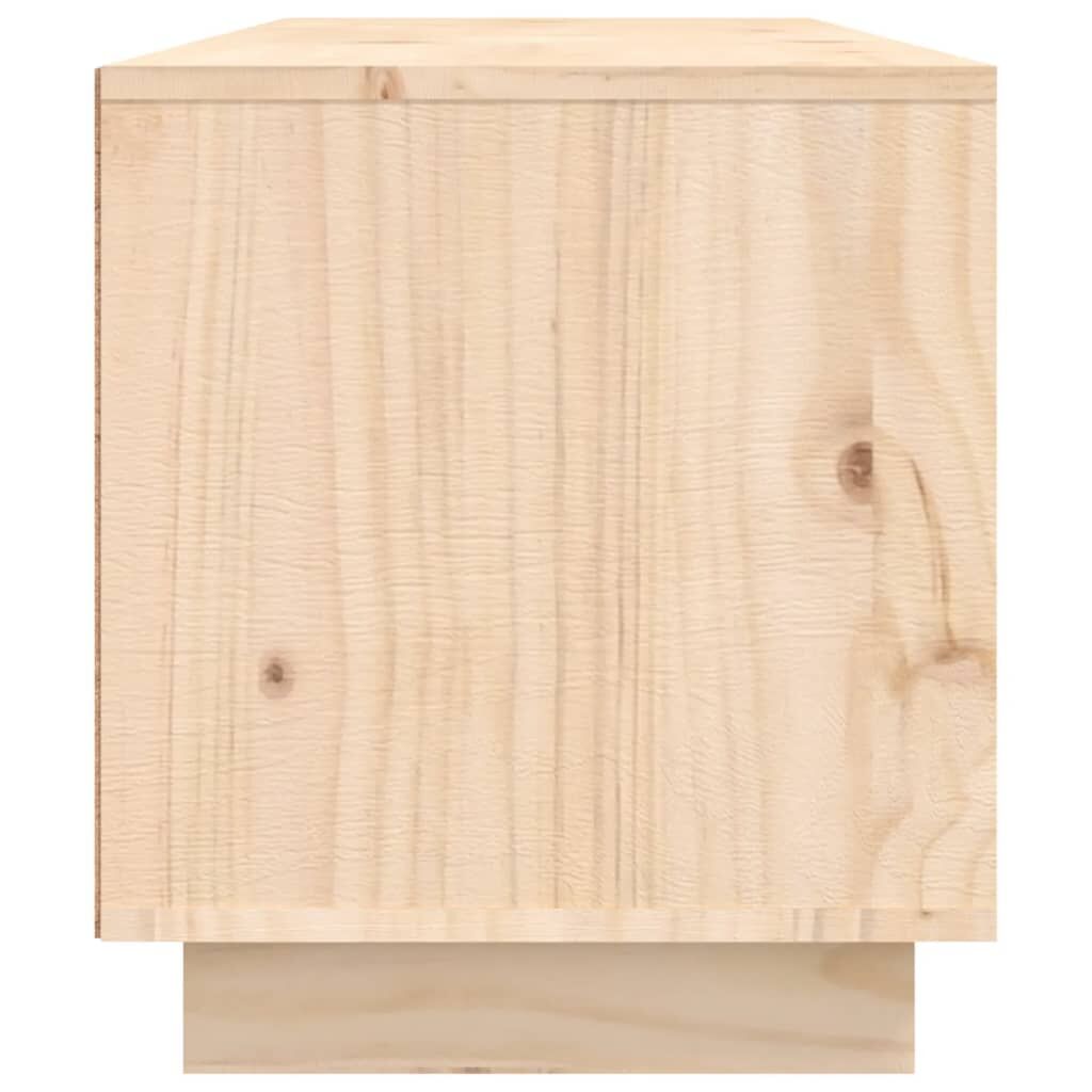 This trendy wooden TV cabinet, featuring a sleek and stylish design, is meant to be a decorative as well as practical addition to your room decor. Solid pine wood: Solid pine wood is a beautiful natural material. Pine wood has a straight grain, and the knots give the material its signature, rustic look.Ample storage space: The TV unit has 4 compartments and 2 doors, offering sufficient storage space to keep your essentials well organised and within reach.Displaying function: The sturdy top is a perfect spot for displaying potted plants, framed photos and other decorative items. Note:Each product comes with an assembly manual in the box for easy assembly.