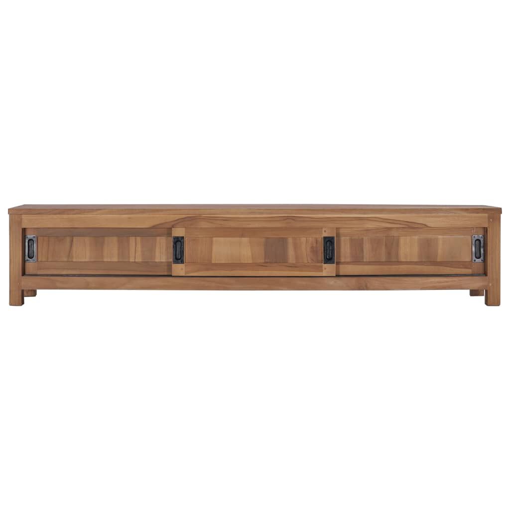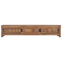 This solid wooden TV cabinet is a timeless accessory for your home. It can also be used as a side cabinet, sideboard or lowboard. This rustic sideboard is handmade of solid teak wood, which is very sturdy and durable and has natural characteristics. The craftsmanship and beautiful wood grains make every piece of furniture unique and slightly different from the next. The lowboard features ample storage space to keep your important items well organised and within reach. You could also put some pots, flowers or photo frames on the sturdy table top. The item is easy to assemble. Important note: Colours and grains may vary from piece to piece, making each of our TV cabinets unique. The delivery is random, ensuring the exclusivity and individuality of your product.