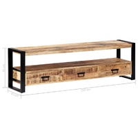 This wooden TV cabinet exudes a rustic charm. It will make a truly practical as well as captivating addition to your interior. The HiFi cabinet is made of solid mango wood, a hardwood with dense grains. Rough mango wood not only boasts the strength to bear the weight, but also stands the wear and tear of time. As a consequence, this beautifully-designed lowboard is exceedingly stable, durable and attention-grabbing. This stereo cabinet is fully handmade and the aesthetically-appealing wood grains make every piece of furniture distinctive and slightly different from each other. Additionally, the powder-coated steel frame adds to its sturdiness. This cabinet features 3 drawers and 1 compartment, providing ample space for storing your multimedia appliances, books, shoes, as well as various other items. Important note: The colours vary from piece to piece, making each piece unique. The delivery is random, ensuring the exclusivity and individuality of your product.