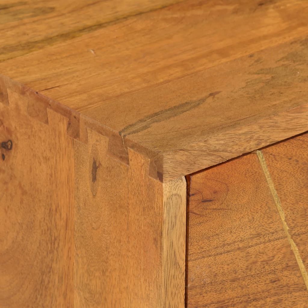 Introduce an air of rustic charm to your interior with our elegant wooden TV cabinet! It will make a timeless addition to your living space. Made of solid mango wood, the TV stand has been given a beautiful finish by polishing and lacquering, making it exude a refined look. Mango wood is a dense and robust hardwood which has beautiful brown or golden streaks and contours on its surface. Additionally, the 2 drawers and 2 open compartments provide storage space for keeping smaller items organised and within reach. Important note: The exquisite craftsmanship and the beautiful solid mango wood grains make every piece of furniture unique and slightly different from the next. The delivery is random, ensuring the exclusivity and individuality of your product. It is easy to assemble.