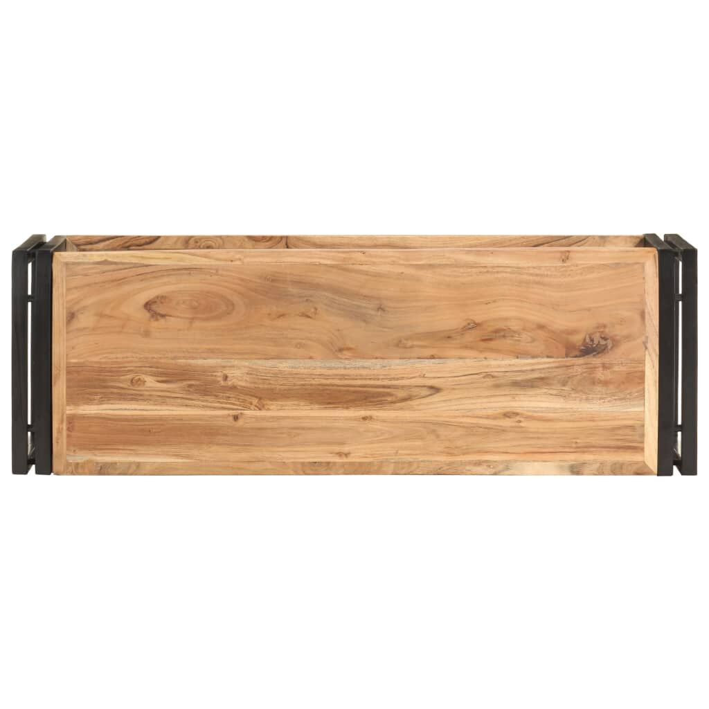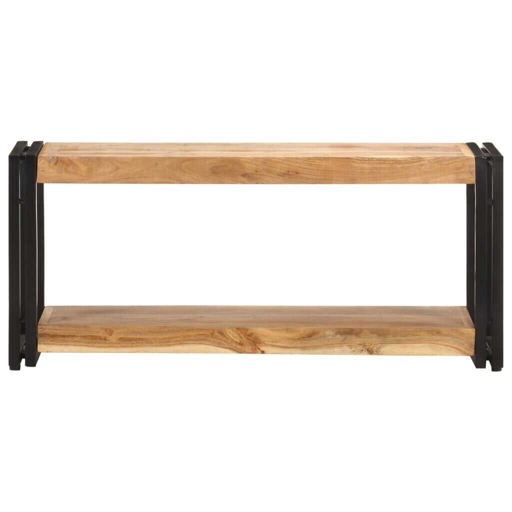 This wooden TV cabinet exudes a vintage charm. It will make an eye-catching addition to your interior. The HiFi cabinet is made of solid acacia wood, a hardwood with dense grains. This beautifully-designed table is stable and durable. Additionally, this stereo cabinet is fully handmade and the aesthetically-appealing wood grains make every piece of furniture distinctive and slightly different from each other. The powder-coated iron legs add to the sideboard's sturdiness as well as industrial style. This cabinet features a shelf, providing ample space for storing your multimedia appliances, books, as well as various other items. Important note: The colours vary from piece to piece, making each piece unique. The delivery is random, ensuring the exclusivity and individuality of your product.