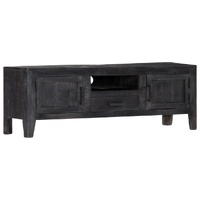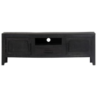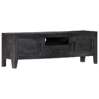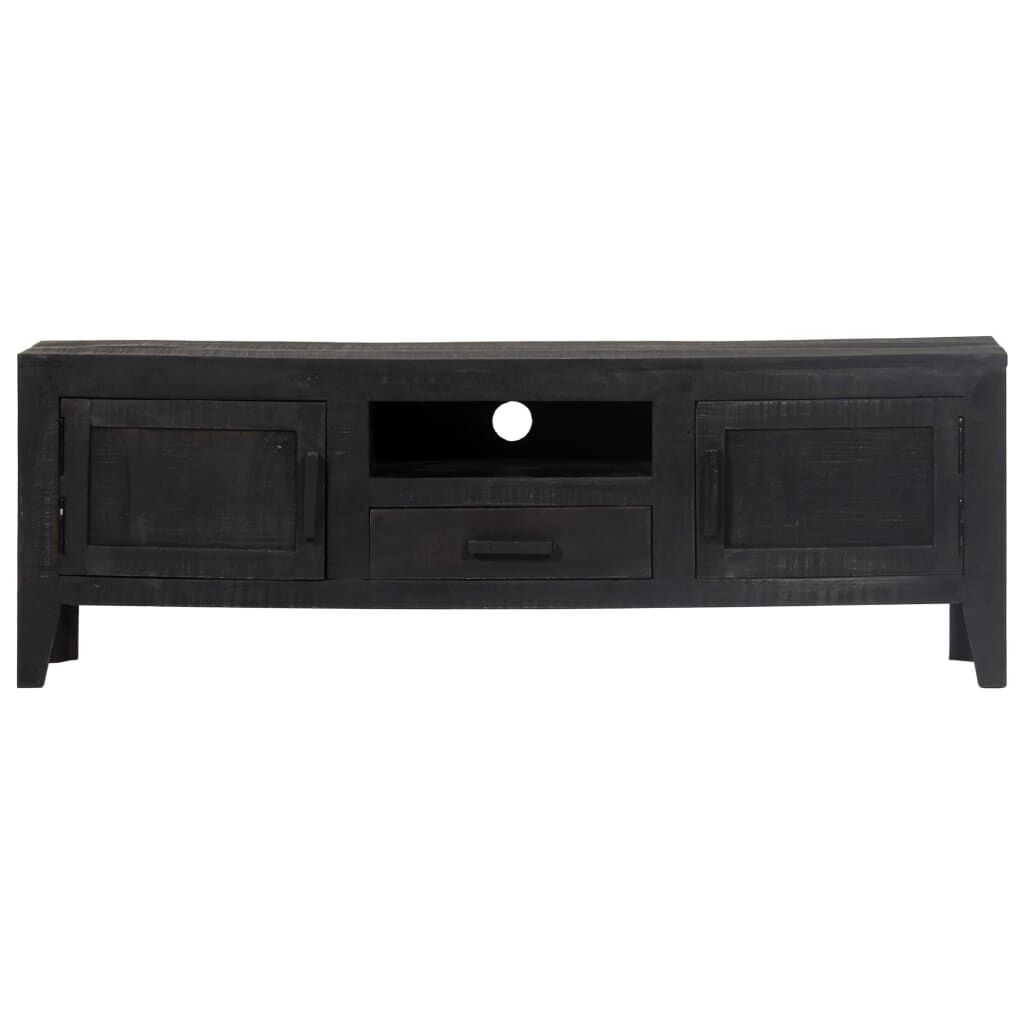 Featuring a trendy yet practical design, this solid wooden TV cabinet will definitely become a focal point of your room. This vintage-style TV cabinet, made of solid mango wood, will make a timeless addition to your home. Mango wood is a dense and robust hardwood which has beautiful brown or golden streaks and contours on its surface. Every step of the process is carried out with the greatest care, be it polishing, painting or lacquering. It has 1 drawer, 1 open compartment and 2 doors for storing knick-knacks and an open compartment for keeping multimedia appliances, gaming consoles and magazines. Important note: Colours vary from piece to piece, making each of our TV cabinets unique. The delivery is random, ensuring the exclusivity and individuality of your product.