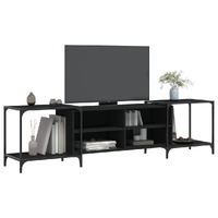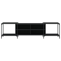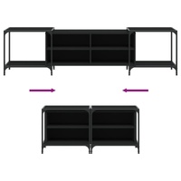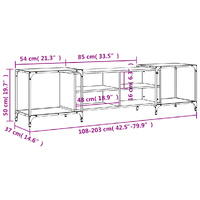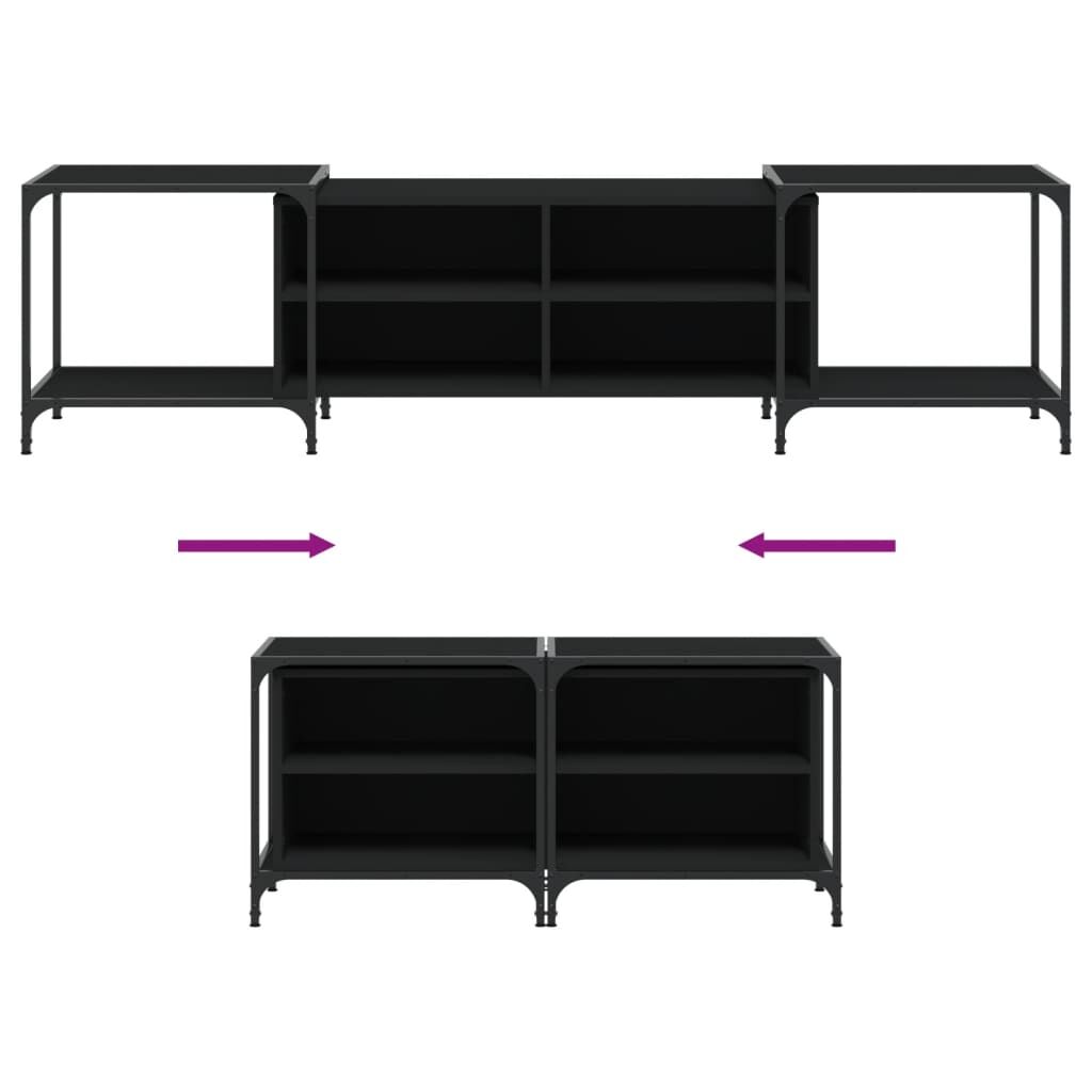 This trendy TV cabinet, featuring a sleek and stylish design, is meant to be a decorative as well as practical addition to your room decor. Durable material: The engineered wood is of exceptional quality with smooth surface and also features strength, stability and resistance to moisture. Made of engineered wood, the TV stand is easy to clean.Ample storage space: The TV unit with shelves offers sufficient storage space to keep your essentials well organised and within reach.Adjustable design: The TV console is adjustable in width as per your needs. Also, the adjustable feet with plastic pads keep the media cabinet balanced on uneven ground and increase stability.Displaying function: The sturdy top of this TV sideboard is a perfect spot for displaying potted plants, framed photos and other decorative items.Metal frame: The metal frame adds an industrial style to your interior while ensuring durability and stability. Warning:To prevent it being overturned, this product must be used with the provided wall attachment device.