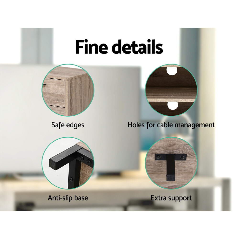 $122.19Your treasured home entertainment system deserves the best cabinet for it. And that is why our Artiss Tania Entertainment Unit is the ideal choice for you. Incorporating a contemporary industrial-look design and presented with 15mm thick particle board with durable powder-coated steel that provides an eclectic touch, our entertainment unit displays great craftsmanship with equally fine hardware to ensure trouble-free use every time. There is even an extra supporting leg attached to the base for a steady and firm stand at all times. And it offers ample storage space with two open shelves and one deep cabinet with a magnetic door catch and two spacious drawers with anti-rust runners for all your entertainment essentials. Better still, the ensemble features black metal handles for a sleek yet industrial appearance and a pre-drilled hole to keep all your cables tidy.