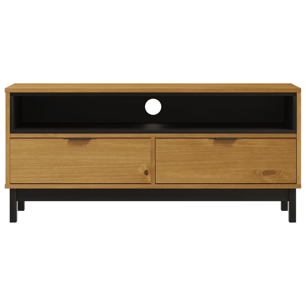 This wooden TV cabinet is designed to be a focal point of your room with a trendy yet practical design. Solid pine wood: Solid pine wood is a beautiful natural material. Pine wood has a straight grain, and the knots give the material its signature, rustic look. Made of solid pine wood, the TV stand is durable and sturdy.Spacious storage: The TV unit has ample storage space which makes it an ideal place for storing all your magazines, DVDs, and other items. The cable hole at the back of the cabinet allows you to organise the mess wires easily.Displaying function: The sturdy top of the media cabinet is ideal for displaying decorative items like photo frames and plants. Warning:To prevent it being overturned, this product must be used with the provided wall attachment device.