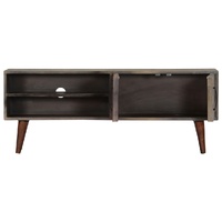 Featuring a trendy yet practical design, this solid wooden TV cabinet will definitely become a focal point of your room. This modern-style TV cabinet, made of solid mango wood, will make a timeless addition to your home. Mango wood is a dense and robust hardwood which has beautiful brown or golden streaks and contours on its surface. Every step of the process is carried out with the greatest care, be it polishing, painting or lacquering. It has 2 open compartments and 2 doors for storing knick-knacks and keeping multimedia appliances, gaming consoles and magazines. Important note: Colours vary from piece to piece, making each of our TV cabinets unique. The delivery is random, ensuring the exclusivity and individuality of your product.