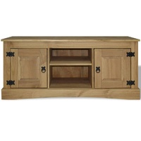 This high-quality wooden TV cabinet is a piece of furniture in the Mexican 'Corona' style. The waxed pine exudes a rustic Mexican charm that will make it a great addition to your living room. This sturdy and robust TV stand is crafted from solid pinewood. The solid tabletop provides a stable and secure surface on which you can place your TV, a fruit basket or vase or other decorative items. This side board features two cabinets and two open compartments, providing ample space for storing your multimedia appliances, books and various other items. Assembly is easy.