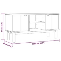 This trendy wooden TV cabinet features a Scandinavian design and is meant to be a decorative as well as practical addition to your current room decor. Solid pine wood: Solid pine wood is a beautiful natural material. Pine wood has a straight grain, and the knots give the material its signature, rustic look.Stable frame: The wooden frame ensures sturdiness and stability.Ample storage space: The TV unit has 1 shelf and 2 compartments with doors, offering sufficient storage space to keep your essentials well organised and within reach.Displaying function: The sturdy top is ideal for displaying potted plants, framed photos and other decorative items. WARNING:In order to prevent overturning, this product must be used with the wall attachment device provided. Note:Each product comes with an assembly manual in the box for easy assembly.