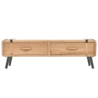 This retro-style wooden TV cabinet exudes a rustic charm that will make a decorative addition to your bedroom or living room decor. This highly stable and durable HiFi cabinet was crafted from solid fir wood. The sturdy top is ideal for placing your TV or HiFi system as well as some decorative items such as vases or fruit baskets. The drawers provide ample space for keeping your DVD player, game console, streaming device, media carriers, etc. neatly organised. The special luggage design adds to this lowboard's vintage style. Assembly is easy.