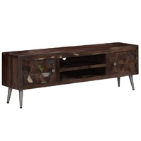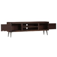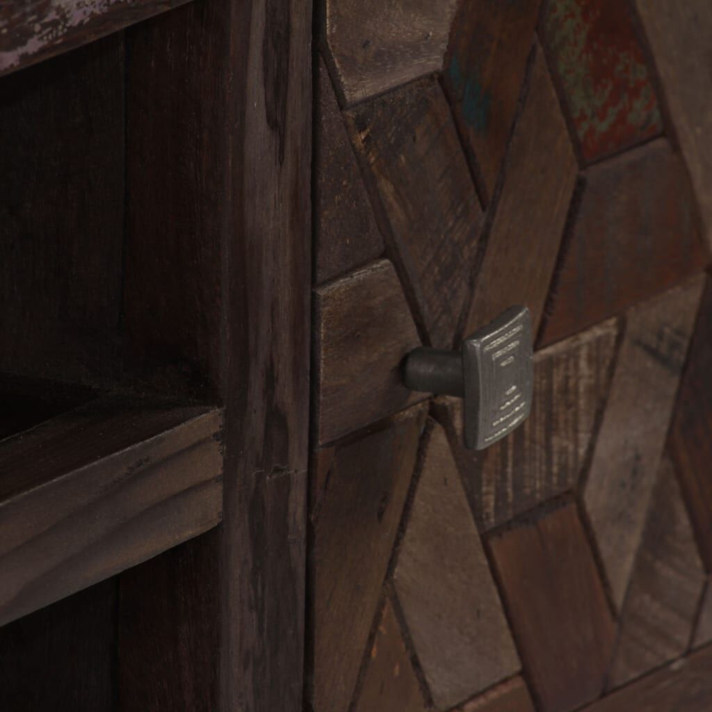 This solid wooden TV cabinet will make a decorative as well as practical addition to your living room. It could also be used as a side cabinet, sideboard or lowboard. The cabinet is made of solid reclaimed wood that has been sourced from joists, floors and support beams from old buildings being demolished, and can consist of different types of wood like pine, teak, beech, oak, cedar, mango wood, acacia, etc. This means the reclaimed wood retains the characteristics of these different types of wood. Reclaimed wood is already aged, weathered and dried, so it doesn't shrink or bend. The beautiful wood grains make every piece of furniture unique and slightly different from the next. Signs of wear and visible grain structure are indicative of the wood's rich history and give the cabinet a warm and authentic look. Every step of the process is carried out with the greatest care, be it polishing, painting or lacquering. Designed with ample storage space, the lowboard keeps your magazines, books, DVDs and multimedia devices well organised and within reach. It features two holes at the back to accommodate the cables. Its steel legs also add to its sturdiness and stunning industrial style. Assembly is easy. Important note: Colours and grains may vary from piece to piece, making each of our TV cabinets unique. The delivery is random, ensuring the exclusivity and individuality of your product.