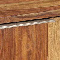 This solid Sheesham wood TV cabinet with a honey finish will make a decorative as well as practical addition to your decor. This wooden cabinet is made of solid Sheesham wood and can also be used as a sideboard or HiFi cabinet. Sheesham is a tropical hardwood that is famous for its rich grains and also known as rosewood or palisander. Every step of the process is carried out with the greatest care, be it polishing or lacquering. The craftsmanship and the beautiful wood grains make every piece of furniture unique and slightly different from the next. This cabinet has a sturdy top, on which you can place decorative items like fruit baskets or vases. Designed with 2 compartments and 2 cabinets, this sideboard has ample space to keep your DVDs, multimedia devices or other small items well organised and within reach. It features two holes at the back to accommodate the cables. Its steel legs also add to its sturdiness and its mid-century modern look. Assembly is easy. Important note: Colours and grains may vary from piece to piece, making each of our TV cabinets unique. The delivery is random, ensuring the exclusivity and individuality of your product.