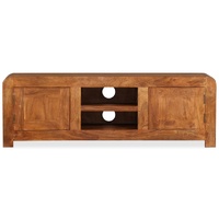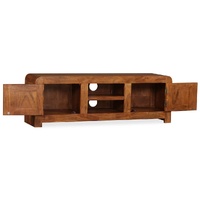 This stylish and practical wooden TV cabinet will make a timeless addition to your home decor. It can be also used as a HiFi cabinet, lowboard or sideboard. This plasma cabinet is made of solid acacia wood with a honey touch finish. Acacia is durable tropical hardwood. The TV cabinet is fully handmade, and the beautiful wood grains make every piece of furniture unique and slightly different from each other. Its 2 cupboards and 2 shelves provide ample space for storing multimedia devices, media carriers, and any other items you'd like to display or keep within reach. Each cupboard has a door with a special hinge, in this way the door doesn't need a door handle. The item is already assembled; no assembly is required. Important note: The colours vary from piece to piece, making each piece unique. The delivery is random, ensuring the exclusivity and individuality of your product.