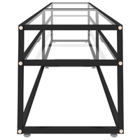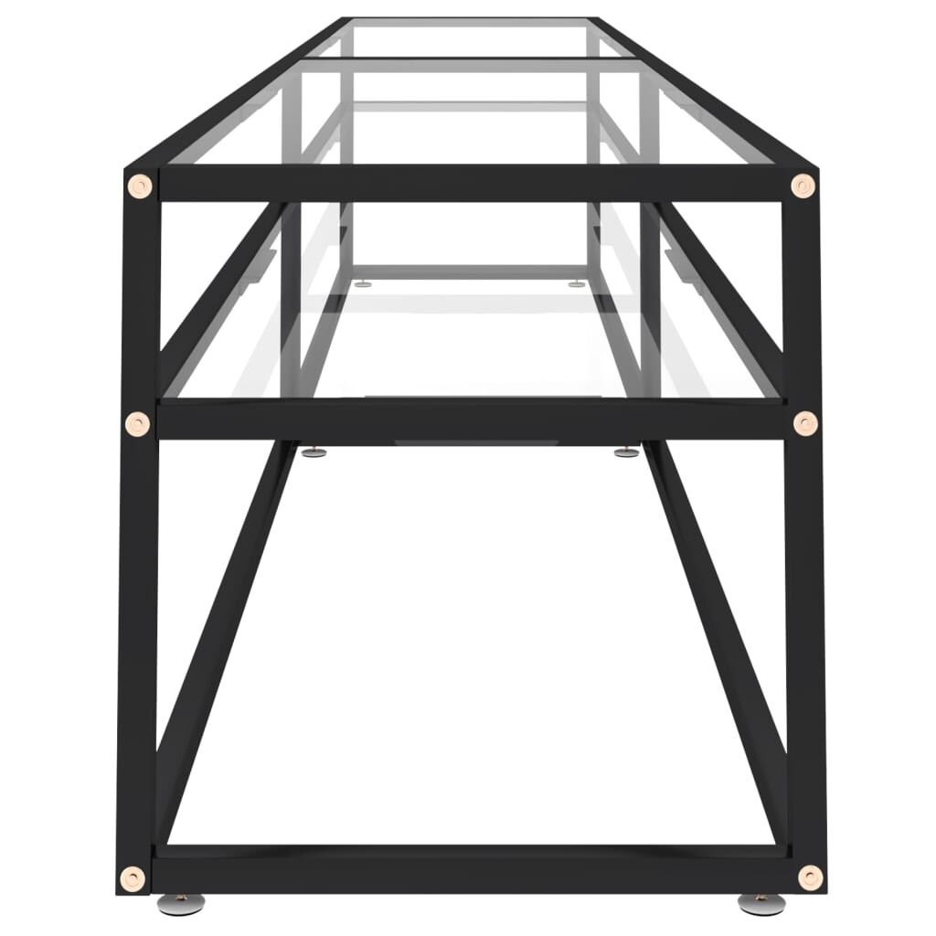 This TV cabinet, featuring a sleek and streamlined design, is meant to be a practical addition to your existing living space. This stereo cabinet is made of tempered glass, sturdy and stable. It is also easy to clean with a damp cloth. The powder-coated steel frame adds to its sturdiness. The shelf under the tabletop provides ample storage space to keep your DVDs, multimedia appliances, books and small essential items organised and within reach.