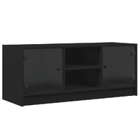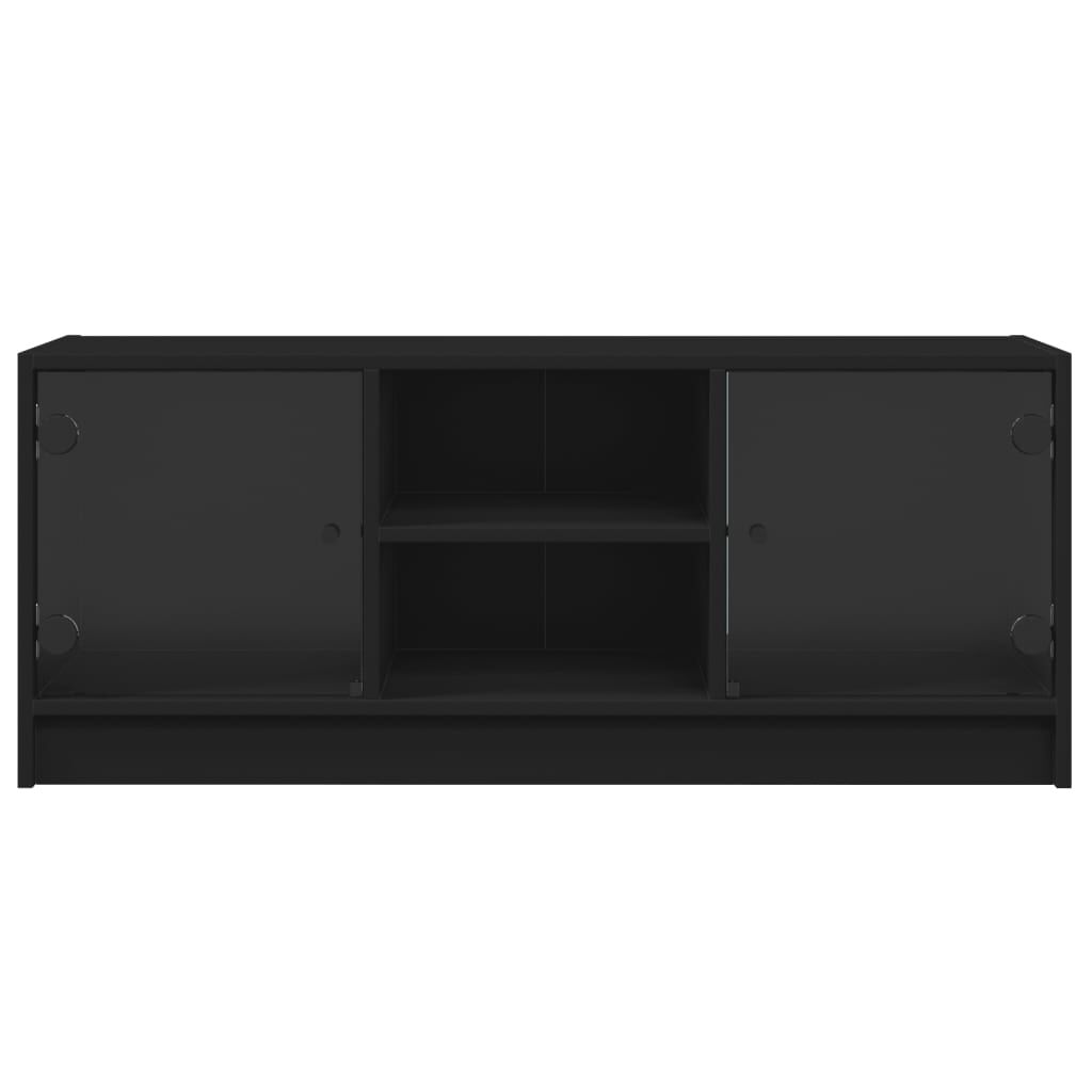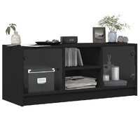This TV cabinet features a sleek and classic design, making it a decorative and practical extension to your decor. Durable material: The engineered wood is of exceptional quality with smooth surface and also features strength, stability and resistance to moisture. Made of engineered wood, this TV unit is easy to clean.Ample storage: This TV stand features ample storage space which makes it an ideal place for storing all your magazines, DVDs or other items.Practical glass doors: Keep your space clutter-free by hiding small essentials behind the doors of the storage cabinet. In addition, the glass doors allow you to see inside the media cabinet to display items beautifully.