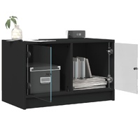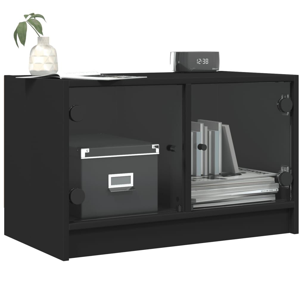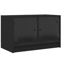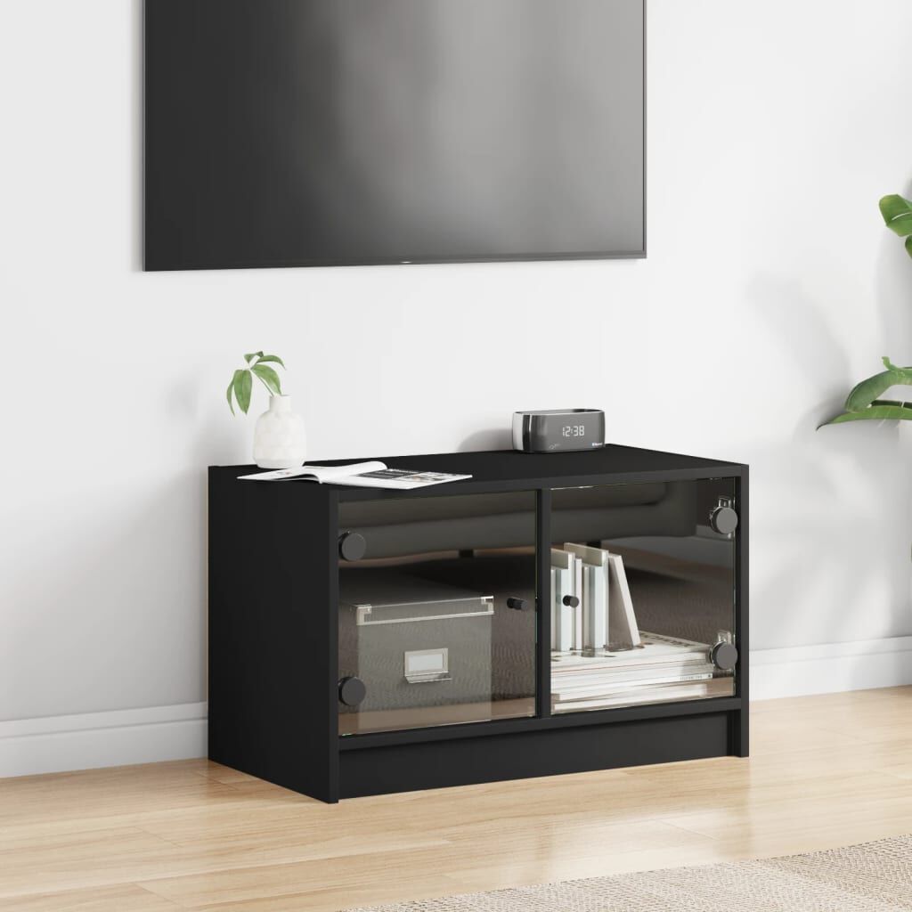 This TV cabinet features a sleek and classic design, making it a decorative and practical extension to your decor. Durable material: The engineered wood is of exceptional quality with smooth surface and also features strength, stability and resistance to moisture. Made of engineered wood, this TV unit is easy to clean.Ample storage: This TV stand features ample storage space which makes it an ideal place for storing all your magazines, DVDs or other items.Practical glass doors: Keep your space clutter-free by hiding small essentials behind the doors of the storage cabinet. In addition, the glass doors allow you to see inside the media cabinet to display items beautifully.