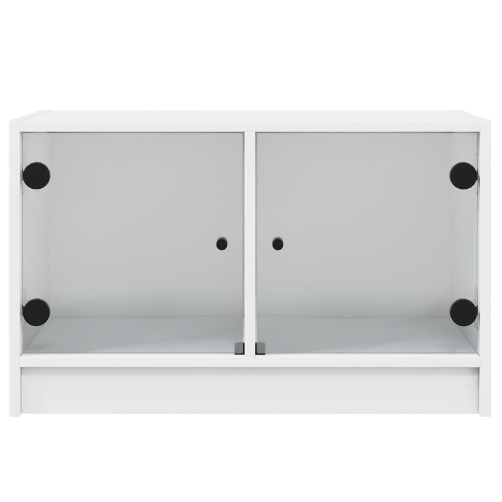 This TV cabinet features a sleek and classic design, making it a decorative and practical extension to your decor. Durable material: The engineered wood is of exceptional quality with smooth surface and also features strength, stability and resistance to moisture. Made of engineered wood, this TV unit is easy to clean.Ample storage: This TV stand features ample storage space which makes it an ideal place for storing all your magazines, DVDs or other items.Practical glass doors: Keep your space clutter-free by hiding small essentials behind the doors of the storage cabinet. In addition, the glass doors allow you to see inside the media cabinet to display items beautifully.