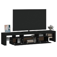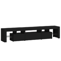 Featuring a trendy yet practical design, this TV cabinet with LED lights definitely becomes a focal point of your room. Practical material: The engineered wood is of exceptional quality with smooth surface and also features strength, stability and resistance to moisture. Colourful LED lights: The TV stand features RGB LED lights, which has different menus to change the colour of lights and let the colour adjust automatically differently. The LED lights underline the modern look and contribute to the trendy feeling.Ample storage space: The TV unit provides plenty of storage space for keeping your magazines, books, remote controls and other small items well-organised and within easy reach.Displaying function: The sturdy top of media cabinet is ideal for displaying decorative objects, photo frames, or potted plants. Note:The product has a USB connector, but the certified 5V USB power source is not included.Each product comes with an assembly manual in the box for easy assembly.