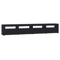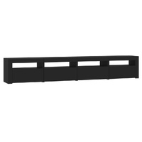 Featuring a trendy yet practical design, this TV cabinet with LED lights definitely becomes a focal point of your room. Practical material: The engineered wood is of exceptional quality with smooth surface and also features strength, stability and resistance to moisture. Colourful LED lights: The TV stand features RGB LED lights, which has different menus to change the colour of lights and let the colour adjust automatically differently. The LED lights underline the modern look and contribute to the trendy feeling.Ample storage space: The TV unit provides plenty of storage space for keeping your magazines, books, remote controls and other small items well-organised and within easy reach.Displaying function: The sturdy top of media cabinet is ideal for displaying decorative objects, photo frames, or potted plants. Note:The product has a USB connector, but the certified 5V USB power source is not included.Each product comes with an assembly manual in the box for easy assembly.