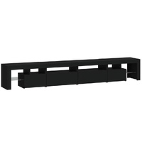 Featuring a trendy yet practical design, this TV cabinet with LED lights definitely becomes a focal point of your room. Practical material: The engineered wood is of exceptional quality with smooth surface and also features strength, stability and resistance to moisture. Colourful LED lights: The TV stand features RGB LED lights, which has different menus to change the colour of lights and let the colour adjust automatically differently. The LED lights underline the modern look and contribute to the trendy feeling.Ample storage space: The TV unit provides plenty of storage space for keeping your magazines, books, remote controls and other small items well-organised and within easy reach.Displaying function: The sturdy top of media cabinet is ideal for displaying decorative objects, photo frames, or potted plants. Note:The product has a USB connector, but the certified 5V USB power source is not included.Each product comes with an assembly manual in the box for easy assembly.
