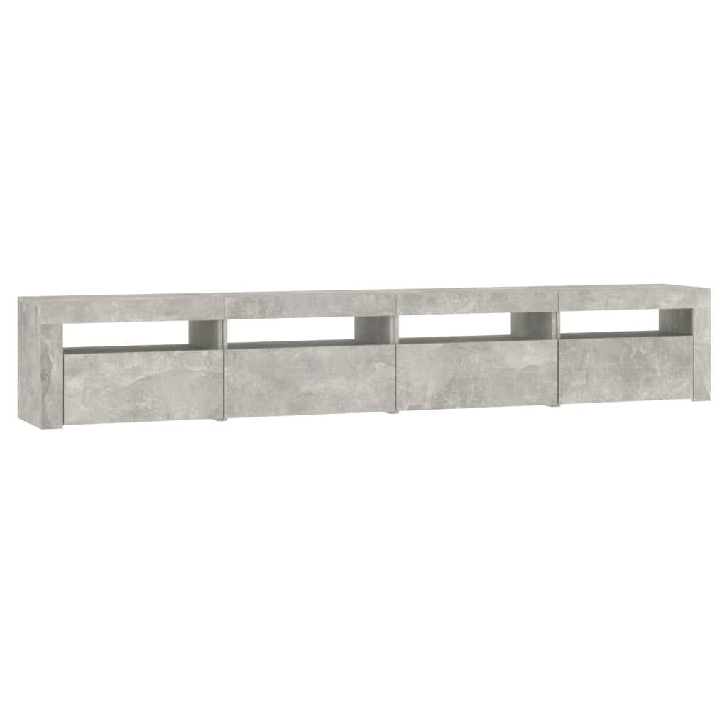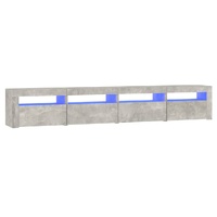 Featuring a trendy yet practical design, this TV cabinet with LED lights definitely becomes a focal point of your room. Practical material: The engineered wood is of exceptional quality with smooth surface and also features strength, stability and resistance to moisture. Colourful LED lights: The TV stand features RGB LED lights, which has different menus to change the colour of lights and let the colour adjust automatically differently. The LED lights underline the modern look and contribute to the trendy feeling.Ample storage space: The TV unit provides plenty of storage space for keeping your magazines, books, remote controls and other small items well-organised and within easy reach.Displaying function: The sturdy top of media cabinet is ideal for displaying decorative objects, photo frames, or potted plants. Note:The product has a USB connector, but the certified 5V USB power source is not included.Each product comes with an assembly manual in the box for easy assembly.
