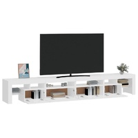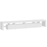 Featuring a trendy yet practical design, this TV cabinet with LED lights definitely becomes a focal point of your room. Practical material: The engineered wood is of exceptional quality with smooth surface and also features strength, stability and resistance to moisture. Colourful LED lights: The TV stand features RGB LED lights, which has different menus to change the colour of lights and let the colour adjust automatically differently. The LED lights underline the modern look and contribute to the trendy feeling.Ample storage space: The TV unit provides plenty of storage space for keeping your magazines, books, remote controls and other small items well-organised and within easy reach.Displaying function: The sturdy top of media cabinet is ideal for displaying decorative objects, photo frames, or potted plants. Note:The product has a USB connector, but the certified 5V USB power source is not included.Each product comes with an assembly manual in the box for easy assembly.