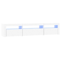 Featuring a trendy yet practical design, this TV cabinet with LED lights definitely becomes a focal point of your room. Practical material: The engineered wood is of exceptional quality with smooth surface and also features strength, stability and resistance to moisture. Colourful LED lights: The TV stand features RGB LED lights, which has different menus to change the colour of lights and let the colour adjust automatically differently. The LED lights underline the modern look and contribute to the trendy feeling.Ample storage space: The TV unit provides plenty of storage space for keeping your magazines, books, remote controls and other small items well-organised and within easy reach.Displaying function: The sturdy top of media cabinet is ideal for displaying decorative objects, photo frames, or potted plants. Note:The product has a USB connector, but the certified 5V USB power source is not included.Each product comes with an assembly manual in the box for easy assembly.