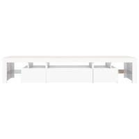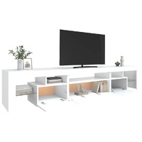 Featuring a trendy yet practical design, this TV cabinet with LED lights definitely becomes a focal point of your room. Practical material: The engineered wood is of exceptional quality with smooth surface and also features strength, stability and resistance to moisture. Colourful LED lights: The TV stand features RGB LED lights, which has different menus to change the colour of lights and let the colour adjust automatically differently. The LED lights underline the modern look and contribute to the trendy feeling.Ample storage space: The TV unit provides plenty of storage space for keeping your magazines, books, remote controls and other small items well-organised and within easy reach.Displaying function: The sturdy top of media cabinet is ideal for displaying decorative objects, photo frames, or potted plants. Note:The product has a USB connector, but the certified 5V USB power source is not included.Each product comes with an assembly manual in the box for easy assembly.