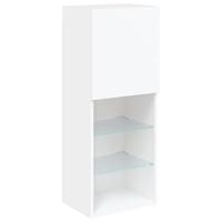 Featuring a trendy yet practical design, this TV cabinet with LED lights will become a focal point of your room. Durable material: The engineered wood is of exceptional quality with smooth surface and also features strength, stability and resistance to moisture. Made of engineered wood, this TV stand is sturdy and durable.Ample storage space: The TV unit offers ample storage space for keeping your DVD players, receivers, disks, and other small items well organised and within reach.RGB LED lights: This entertainment centre features RGB LED lights, which have different menus to change the colour of lights and let the colour adjust automatically.Wall-mounted design: This media cabinet can be wall-mounted to add extra storage space. That way, you can maximise your floor space and keep the area clean. Good to know:Screws and plugs for inside the wall are not included. We advise to find and use screws and plugs suitable specifically for your walls. If you're not sure, you can consult with a professional. Please read and follow each step of the instructions.The product has a USB connector that requires a certified 5V USB power source (not included).