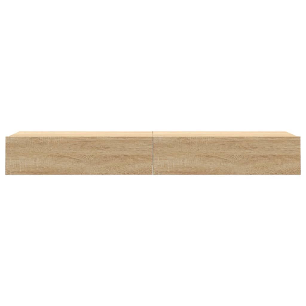 Featuring a stylish yet practical design, these TV cabinets with LED lights are meant to become a focal point of your room. Practical material: The engineered wood is of exceptional quality with smooth surface and also features strength, stability and resistance to moisture. Made of engineered wood, the LED TV cabinet is easy to clean.Ample storage space: The storage space makes the wall cabinet easy to keep things organised.RGB LED lights: The TV stand features RGB LED lights, which have different menus to change the colour of lights and let the colour adjust automatically differently. The LED lights underline the modern look and contribute to the trendy feeling.Stylish look: The clean lines and sleek design make the TV unit blend into your interior perfectly. Good to know:The product has a USB connector, but the certified 5V USB power source is not included.Screws and plugs for inside the wall are not included. We advise to find and use screws and plugs suitable specifically for your walls. If you're not sure, you can consult with a professional. Please read and follow each step of the instructions.