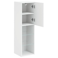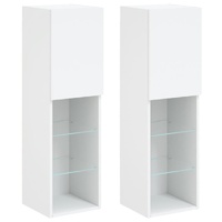 Featuring a trendy yet practical design, these TV cabinets with LED lights will become a focal point of your room. Durable material: The engineered wood is of exceptional quality with smooth surface and also features strength, stability and resistance to moisture. Made of engineered wood, these TV stands are sturdy and durable.Ample storage space: These TV units offer ample storage space for keeping your DVD players, receivers, disks, and other small items well organised and within reach.RGB LED lights: These entertainment centres feature RGB LED lights, which have different menus to change the colour of lights and let the colour adjust automatically.Wall-mounted design: These media cabinets can be wall-mounted to add extra storage space. That way, you can maximise your floor space and keep the area clean. Good to know:Screws and plugs for inside the wall are not included. We advise to find and use screws and plugs suitable specifically for your walls. If you're not sure, you can consult with a professional. Please read and follow each step of the instructions.The product has a USB connector that requires a certified 5V USB power source (not included).