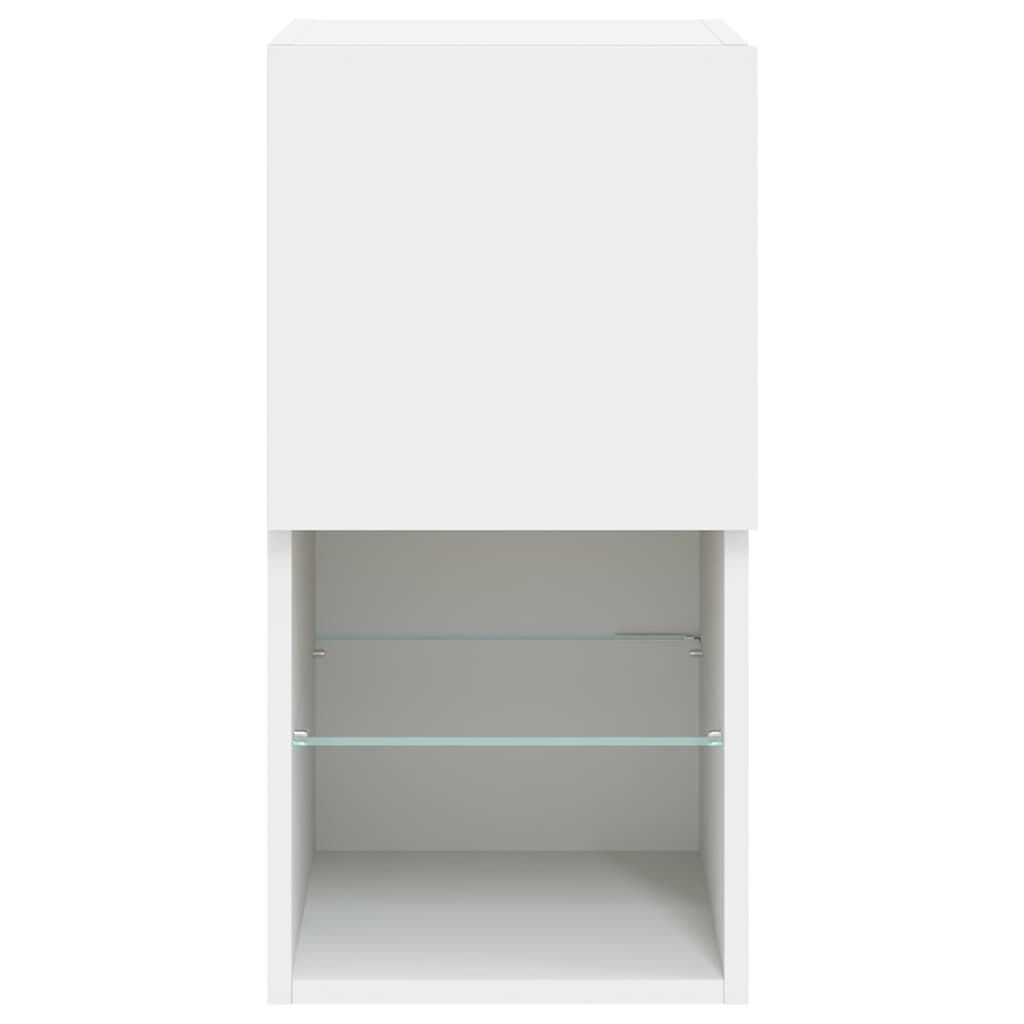 Featuring a trendy yet practical design, these TV cabinets with LED lights will become a focal point of your room. Durable material: The engineered wood is of exceptional quality with smooth surface and also features strength, stability and resistance to moisture. Made of engineered wood, these TV stands are sturdy and durable.Ample storage space: These TV units offer ample storage space for keeping your DVD players, receivers, disks, and other small items well organised and within reach.RGB LED lights: These entertainment centres feature RGB LED lights, which have different menus to change the colour of lights and let the colour adjust automatically.Wall-mounted design: These media cabinets can be wall-mounted to add extra storage space. That way, you can maximise your floor space and keep the area clean. Good to know:Screws and plugs for inside the wall are not included. We advise to find and use screws and plugs suitable specifically for your walls. If you're not sure, you can consult with a professional. Please read and follow each step of the instructions.The product has a USB connector that requires a certified 5V USB power source (not included).