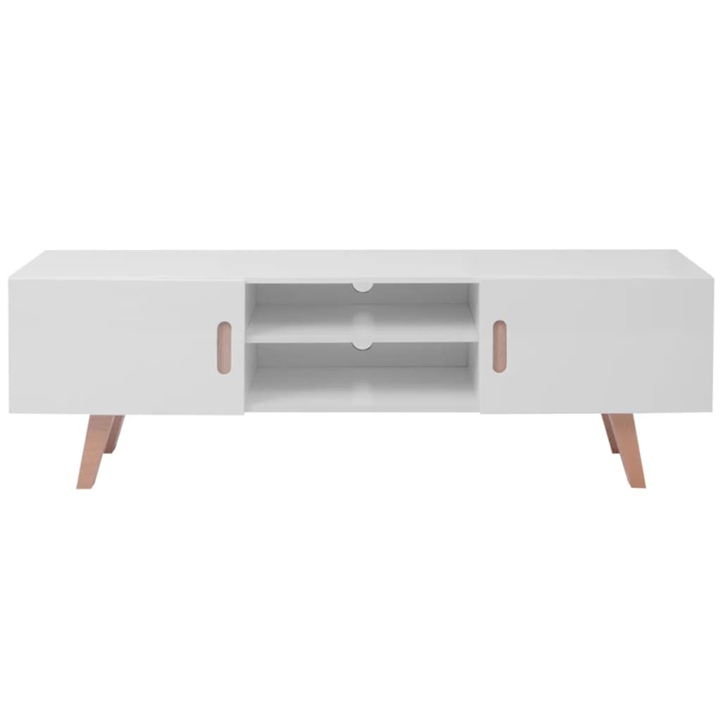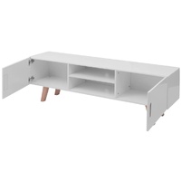 This high gloss TV stand will become the focal point of your living room or entertainment area. It has plenty of storage space and the roomy design works really well. Its sturdy construction makes the stand highly durable. The high gloss finish gives the piece an elegant look and feel that will suit any decor. The large cabinets and shelves with ample surface space allow you to keep your DVD player, game console, streaming device and media carriers neatly organised. What's more, you can keep the cables out of sight easily thanks to the 2 cable outlets. With our high gloss entertainment stand for large TVs you can create a sleek, modern entertainment centre for all of your media!