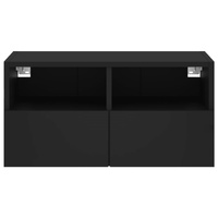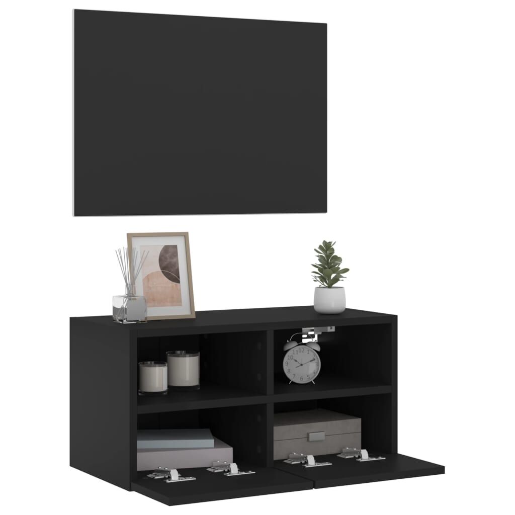 This TV wall cabinet is the perfect solution for your living space to maximise space and keep the floor areas uncluttered. Durable material: The engineered wood is of exceptional quality with a smooth surface and also features strength, stability and resistance to moisture.Ample storage space: The floating TV unit has 2 shelves and 2 compartments behind the door to keep your small items like books, DVDs, and magazines neatly organized and within reach.Wall-mounted design: This wall media unit can be wall-mounted to add extra storage space. That way, you can maximise your floor space and keep the area clean. Good to know:Screws and plugs for inside the wall are not included. We advise to find and use screws and plugs suitable specifically for your walls. If you're not sure, you can consult with a professional. Please read and follow each step of the instructions.