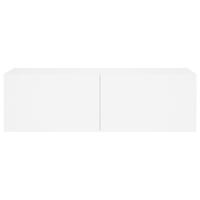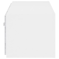 This TV wall cabinet is the perfect solution for your living space to maximise space and keep the floor areas uncluttered. Durable material: The engineered wood is of exceptional quality with a smooth surface and also features strength, stability and resistance to moisture.RGB LED lights: The wall media cabinet is equipped with vibrant RGB LED lights. With various customisable menus, you can effortlessly change the colour of the lights and even set them to adjust automatically. These LED lights not only enhance the contemporary look of the floating TV unit but also add to its trendy appeal.Ample storage space: The TV wall unit has 2 compartments behind the doors that offer ample space to keep your small items like books, DVDs, and magazines neatly organized and within reach.Wall-mounted design: This LED cabinet can be wall-mounted to add extra storage space. That way, you can maximise your floor space and keep the area clean. Good to know:Screws and plugs for inside the wall are not included. We advise to find and use screws and plugs suitable specifically for your walls. If you're not sure, you can consult with a professional. Please read and follow each step of the instructions.The product has a USB connector that requires a certified 5V USB power source (not included).