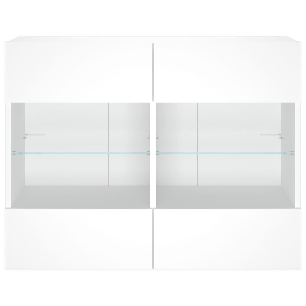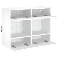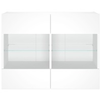 This TV wall cabinet is the perfect solution for your living space to maximise space and keep the floor areas uncluttered. Durable material: The engineered wood is of exceptional quality with a smooth surface and also features strength, stability and resistance to moisture.RGB LED lights: The wall media cabinet is equipped with vibrant RGB LED lights. With various customisable menus, you can effortlessly change the colour of the lights and even set them to adjust automatically. These LED lights not only enhance the contemporary look of the floating TV unit but also add to its trendy appeal.Ample storage space: The TV wall unit has 2 glass shelves and 4 compartments behind the doors that offer ample space to keep your small items like books, DVDs, and magazines neatly organized and within reach.Versatile: The cabinet is multifunctional and can be used as a TV wall cabinet or a wall-mounted bedside cabinet. You can also combine it with other cabinets to create a stunning living wall.Wall-mounted design: This LED cabinet can be wall-mounted to add extra storage space. That way, you can maximise your floor space and keep the area clean. Good to know:Screws and plugs for inside the wall are not included. We advise to find and use screws and plugs suitable specifically for your walls. If you're not sure, you can consult with a professional. Please read and follow each step of the instructions.The product has a USB connector that requires a certified 5V USB power source (not included).