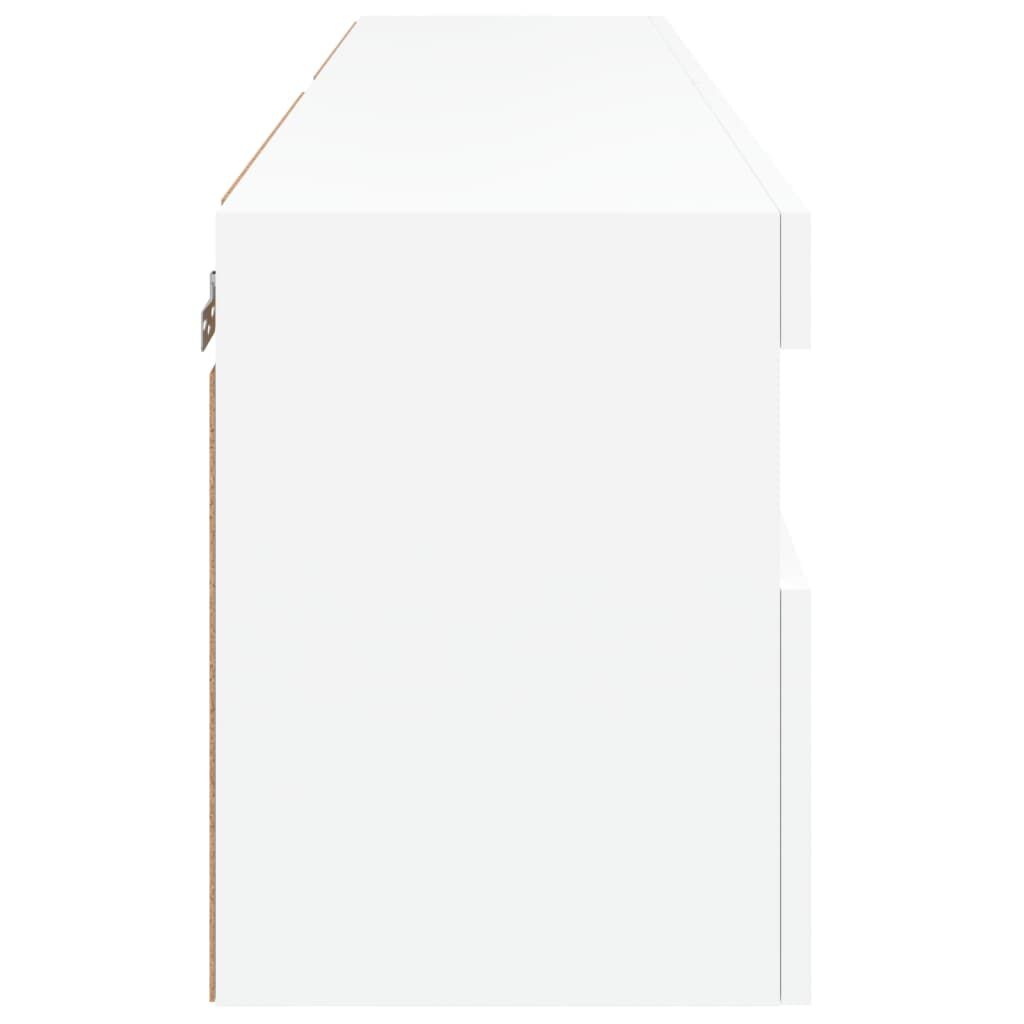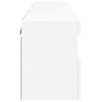 These TV wall cabinets are the perfect solution for your living space to maximise space and keep the floor areas uncluttered. Durable material: The engineered wood is of exceptional quality with a smooth surface and also features strength, stability and resistance to moisture.RGB LED lights: The wall media cabinet is equipped with vibrant RGB LED lights. With various customisable menus, you can effortlessly change the colour of the lights and even set them to adjust automatically. These LED lights not only enhance the contemporary look of the floating TV unit but also add to its trendy appeal.Ample storage space: The TV wall unit offers ample space to keep your small items like books, DVDs, and magazines neatly organized and within reach.Versatile: The cabinet is multifunctional and can be used as a TV wall cabinet or a wall-mounted bedside cabinet. You can also combine it with other cabinets to create a stunning living wall.Wall-mounted design: This LED cabinet can be wall-mounted to add extra storage space. That way, you can maximise your floor space and keep the area clean. Good to know:Screws and plugs for inside the wall are not included. We advise to find and use screws and plugs suitable specifically for your walls. If you're not sure, you can consult with a professional. Please read and follow each step of the instructions.The product has a USB connector that requires a certified 5V USB power source (not included).