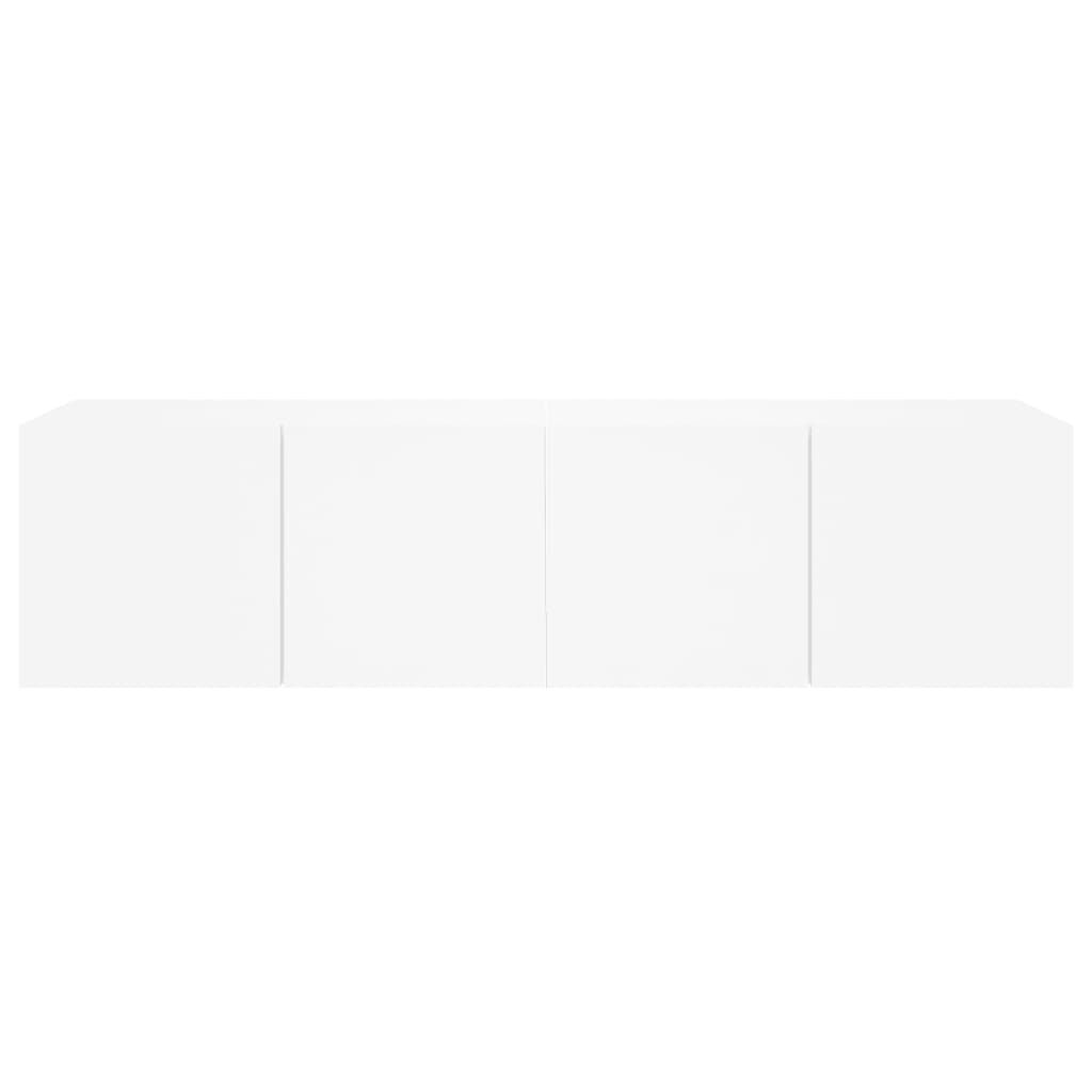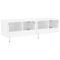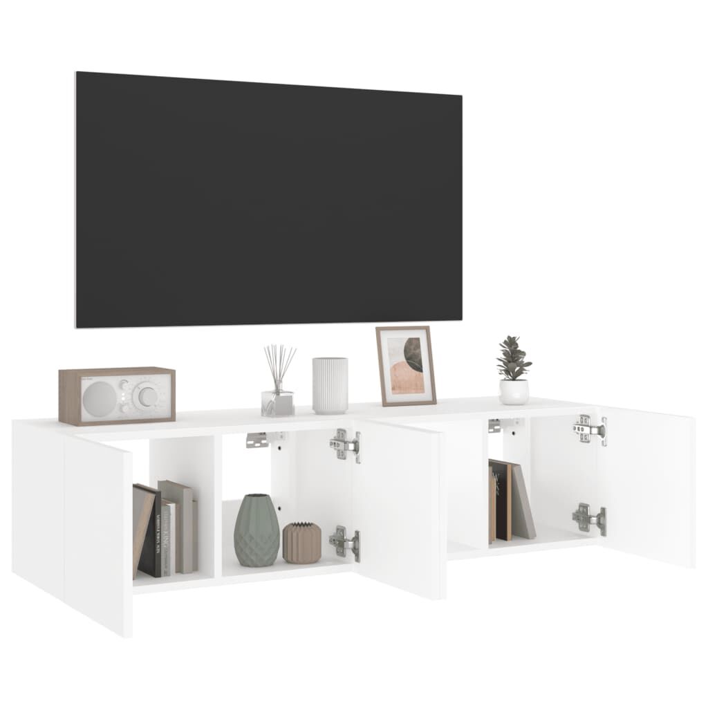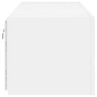 These TV wall cabinets are the perfect solution for your living space to maximise space and keep the floor areas uncluttered. Durable material: The engineered wood is of exceptional quality with a smooth surface and also features strength, stability and resistance to moisture.RGB LED lights: The wall media cabinet is equipped with vibrant RGB LED lights. With various customisable menus, you can effortlessly change the colour of the lights and even set them to adjust automatically. These LED lights not only enhance the contemporary look of the floating TV unit but also add to its trendy appeal.Ample storage space: The TV wall unit has 2 compartments behind the doors that offer ample space to keep your small items like books, DVDs, and magazines neatly organized and within reach.Versatile: The cabinet is multifunctional and can be used as a TV wall cabinet or a wall-mounted bedside cabinet. You can also combine it with other cabinets to create a stunning living wall.Wall-mounted design: This LED cabinet can be wall-mounted to add extra storage space. That way, you can maximise your floor space and keep the area clean. Good to know:Screws and plugs for inside the wall are not included. We advise to find and use screws and plugs suitable specifically for your walls. If you're not sure, you can consult with a professional. Please read and follow each step of the instructions.The product has a USB connector that requires a certified 5V USB power source (not included).