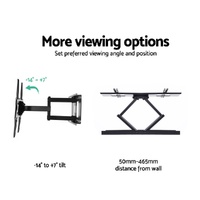 $65.79Short of space for your TV? Perhaps our Artiss TV Wall Mount can help. Our TV wall mount features a 1.5mm thick powder-coated iron frame that can handle a maximum weight of up to 50kg. The slimline mount allows for various VESA measurements to fit TV screens from 32 inch to 70 inch easily. Better still, the mount allows for tilt and swivel so that you can adjust your TV to suit your most comfortable eye line for more enjoyable viewing. Plus, the six-arm frame also enables the TV to be extended or retracted when required. Suitable for concrete or brick wall use, the Artiss TV Wall Mount is definitely the way to space-saving epic TV entertainment.