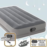 The Prestige Air Mattress is a great portable sleeping solution with a built-in pump powered by any USB-A power source rated 2 Amp and higher. Convenient and versatile to use with your phone charger, 12V USB car charger, or a portable battery power bank. The USB pump is not only smaller and lighter but also more energy efficient than traditional electric pumps. Simply connect the included USB-A cord to the power source of your choice and inflate or deflate within minutes. The Prestige Air Mattress is built with patented Fiber-Tech Construction providing exceptional durability and support for a refreshing night's sleep anywhere.