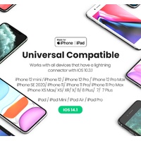 This iPhone 8-pin to 3.5mm Headphone Converter allows you to use your existing 3.5mm headphones with the iPhone 13/13 Mini/13 Pro/13 Pro Max/12/12 Mini/12 Pro/12 Pro Max/11/11 Pro/11 Pro Max/XS/XS Max/XR/X/8 7 6 Plus, iPod touches 6th Generation, iPad 9/iPad Mini/iPad Air/ iPad Pro. (Note: It is not compatible with iPad mini 6, 2021/2020/2018 iPad Pro 11" / 12.9" which has a USB C interface).