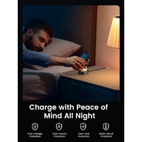 This 2 in 1 wireless portable travel charger has overcurrent protection, overvoltage protection, over-temperature protection, and foreign object detection, offering you a more efficient and safer charging, the magnetic charging surface is covered by silicone material, which will not scratch your device