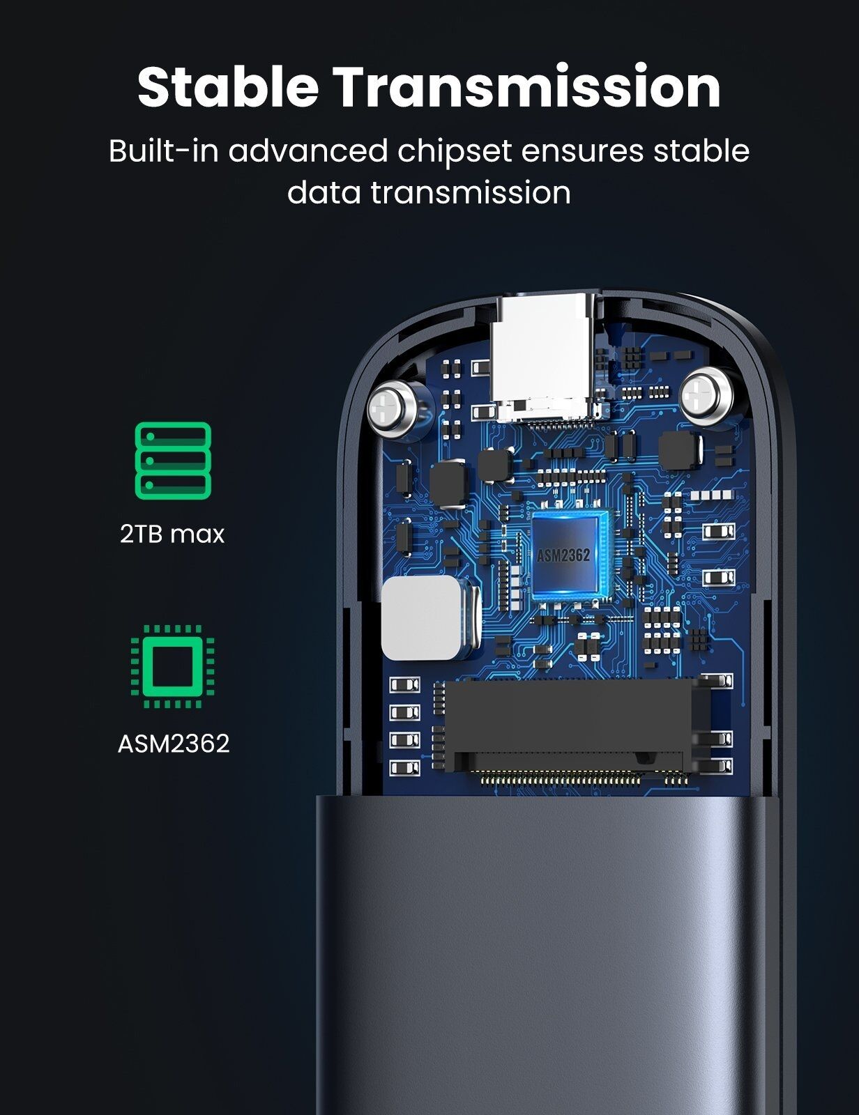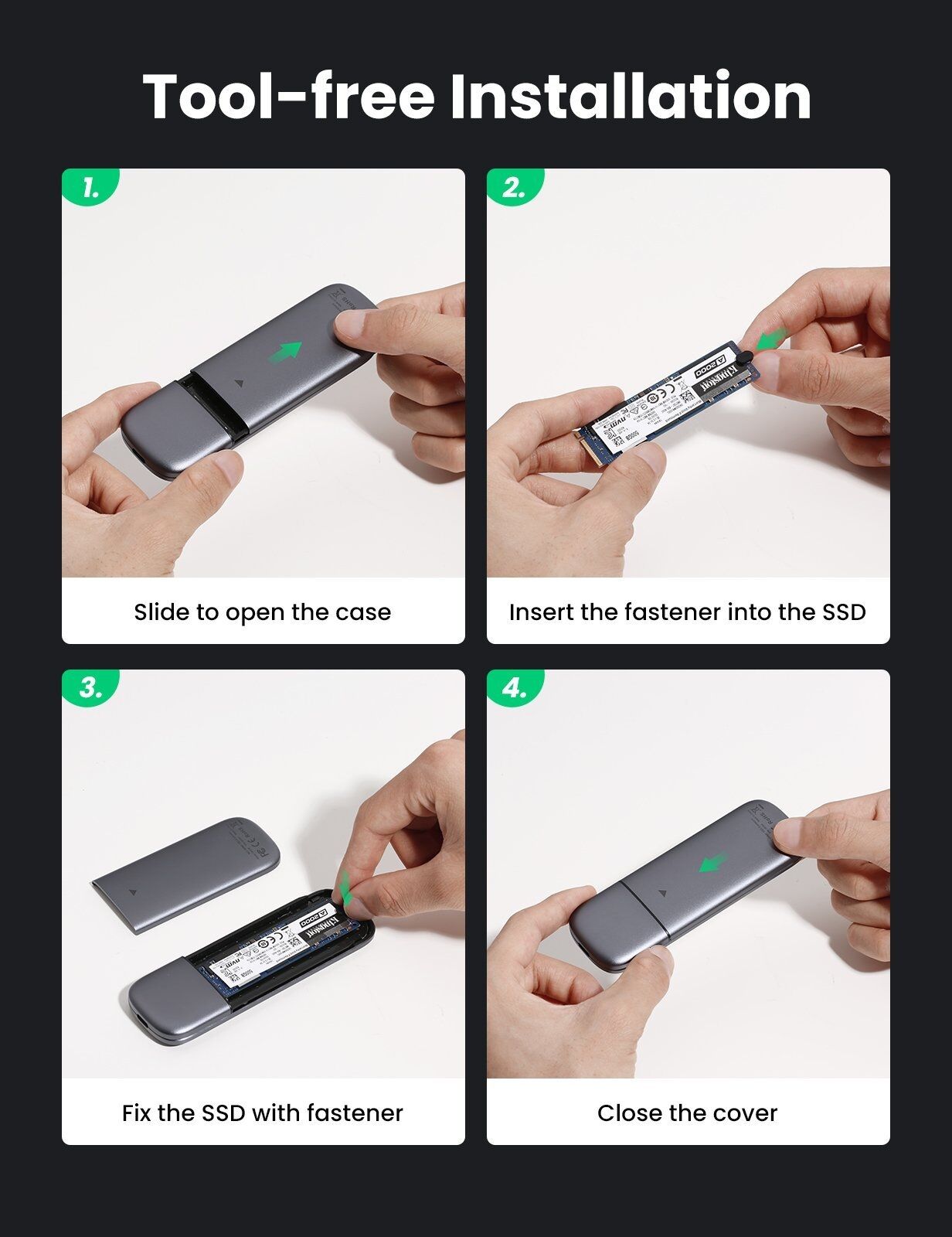 This M.2 SSD enclosure features latest USB 3.1 Gen 2 and PCIe GEN 3, which supports amazing data transmission rate up to 10Gbp. It is faster enough to transfer 1GB files in 1 second.