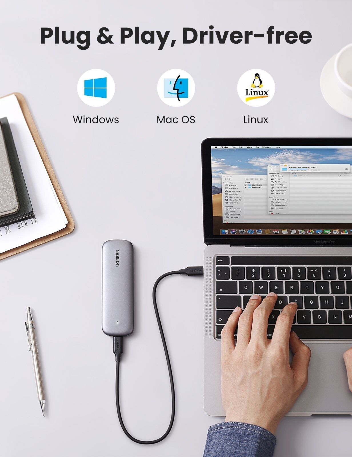 USB C 3.1 Gen2 interface and comes with a 0.5m USB-C to USB-C cable. Work straight with USB-C/Thunderbolt 3 laptops desktops or OTG enabled phones/tablets, compatible with MacBook 2016, MacBook Pro 2017, MacBook Air 2018, Samsung Galaxy Tab S4 10.5/S8/S9, Lenovo XPS 15/13, Google Pixelbook, Acer Chromebook R11.