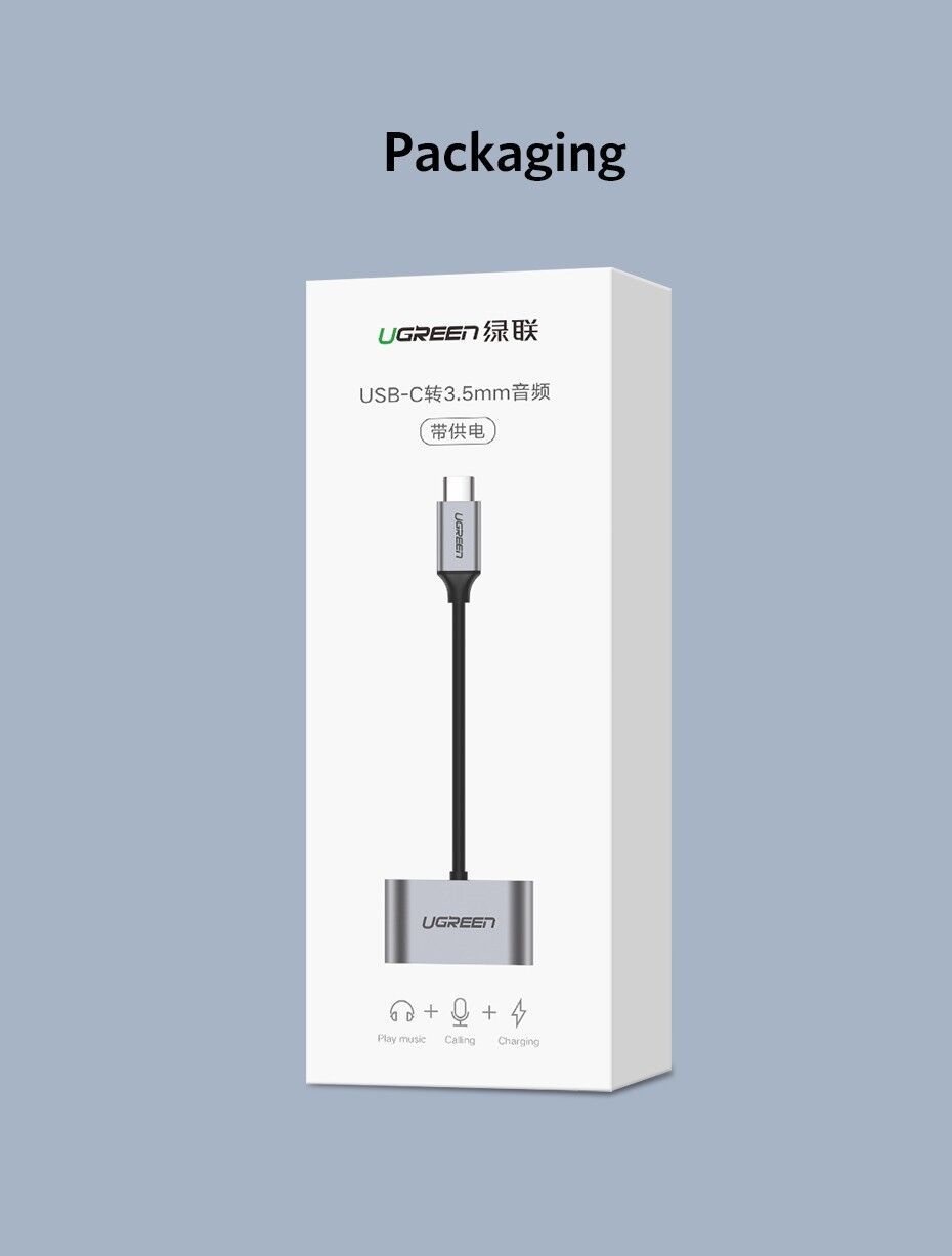 1 x UGreen TypeC to 3.5mm Audio + TypeC Female Adapter Aluminium 50596